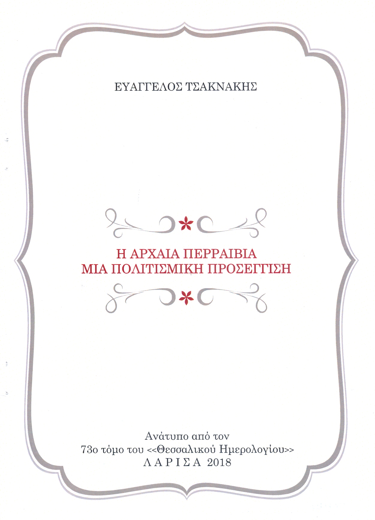 Τσακνάκης, Ε. Η Αρχαία Περραιβία: μια πολιτισμική προσέγγιση. Θεσσαλικό Ημερολόγιο 2018, 73: 113-128.