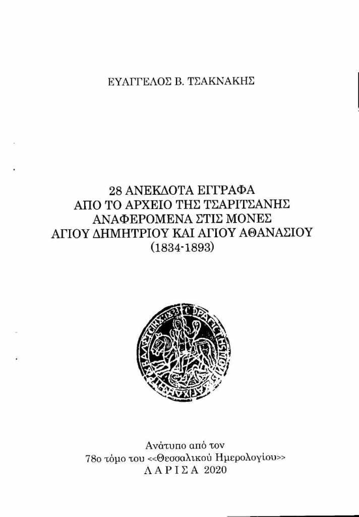 Τα 3 έγγραφα, τα οποία αφορούν τη μονή αγίου Αθανασίου, αναφέρονται σε οικονομικές συναλλαγές (26/1852), στα κτήματα της μονής (27/1860) και στην ενοικίασή τους (28/1893). Από τα έγγραφα αυτά προκύπτουν 77 τοπωνύμια της Τσαριτσάνης και 16 ονοματεπώνυμα ελλήνων ενοικιαστών των κτημάτων.