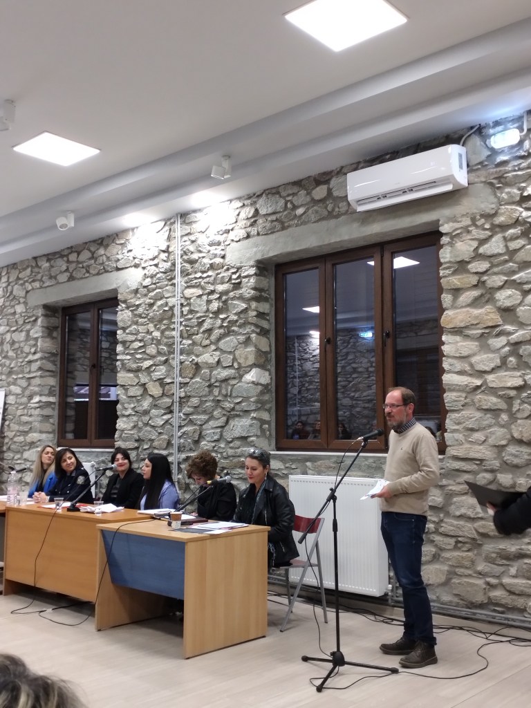 Ο Πρόεδρος της Επιτροπής, κ. Δημήτρης Καρανίκας, απηύθυνε χαιρετισμό και τόνισε την αναγκαιότητα λήψης μέτρων για την εξάλειψη της βίας κατά των γυναικών ειδικά στην ελληνική επαρχία με τις ιδιαιτερότητές της και με τη δυσκολότερη πρόσβαση σε δομές προστασίας των γυναικών. Και γι’ αυτό άλλωστε γίνονται αυτές οι ενέργειες ενημέρωσης του κοινού και ειδικά των γυναικών.