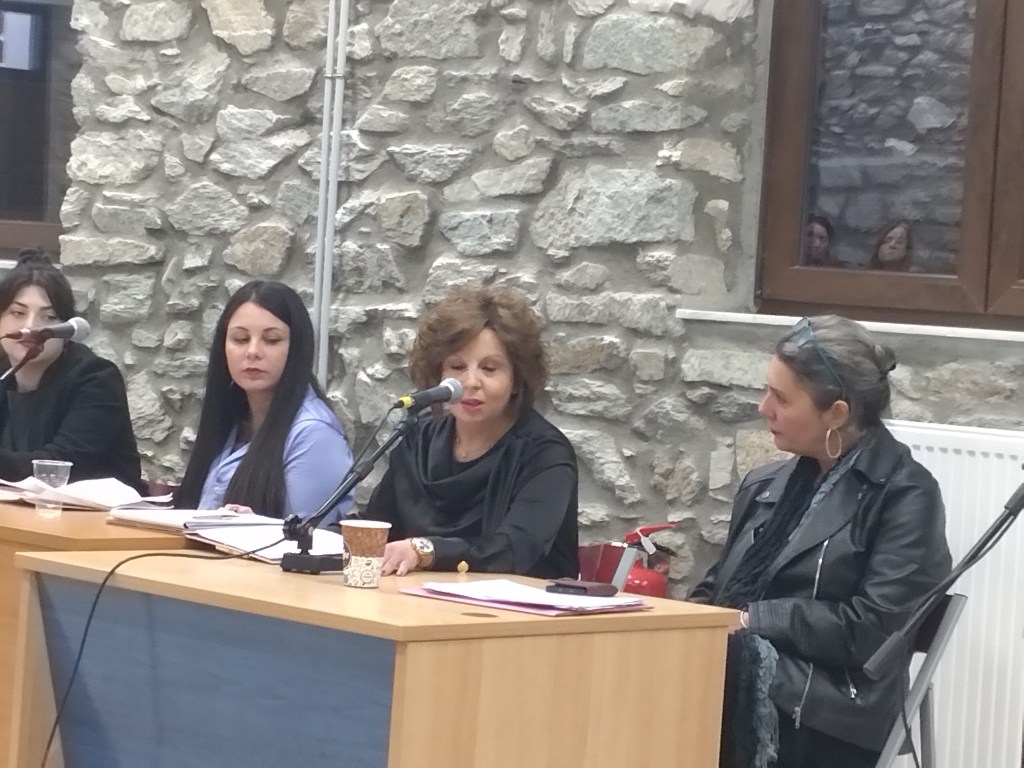 Η κ. Κυριακή Ανδρεάδη, ψυχολόγος, στέλεχος του Κέντρου Κοινότητας του Δήμου Ελασσόνας μίλησε για τον «ρόλο του Κέντρου Κοινότητας στην τοπική κοινωνία, ως δομή πρώτης υποδοχής, υποστήριξης και παραπομπής των γυναικών, θυμάτων βίας».