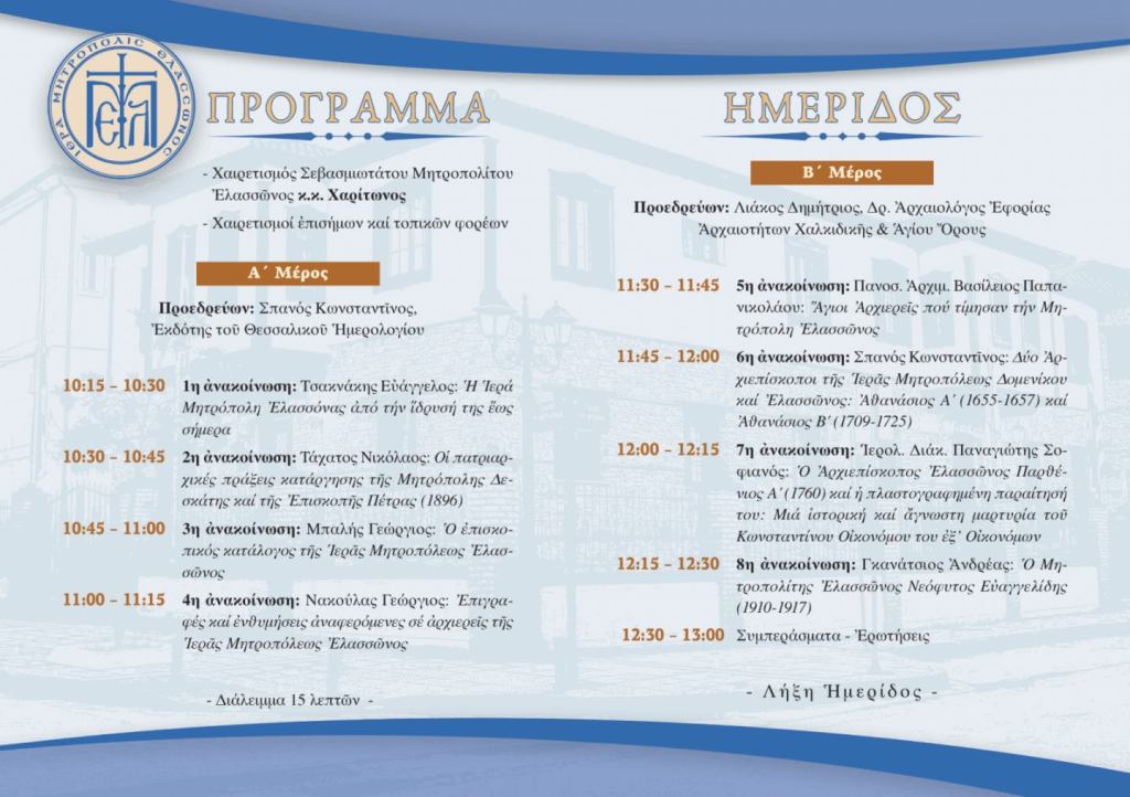 3ο Συνέδριο Τοπικής Ιστορίας του Δήμου Ελασσόνας (Πρόγραμμα)