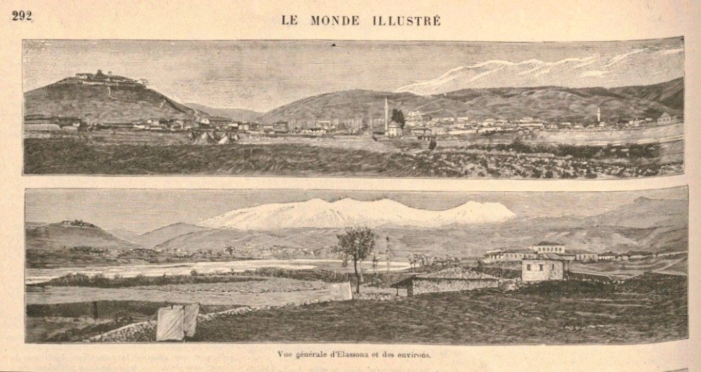 Πηγή: Le Monde Illustré (1897). Ειδική ανταπόκριση για τον Ελληνοτουρκικό Πόλεμο, τεύχος 2093, 8 Μαΐου 1897, σελ. 289-304 (Ειδική αναφορά στην Ελασσόνα, σελ. 291-292). Παρίσι. Ψηφιακό αρχείο: Bibliothèque nationale de France (Gallica).